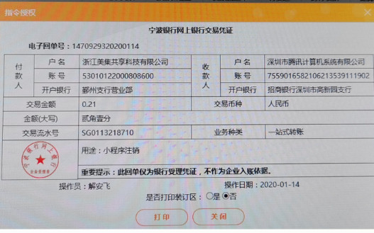 已打款验证两次,已仔细核对,确认是使用法人银行卡支付提示金额至指定对公账户,流程环节都没有发现问题,希望微信帮忙注销此小程序或指正操作错误的地方,谢谢!