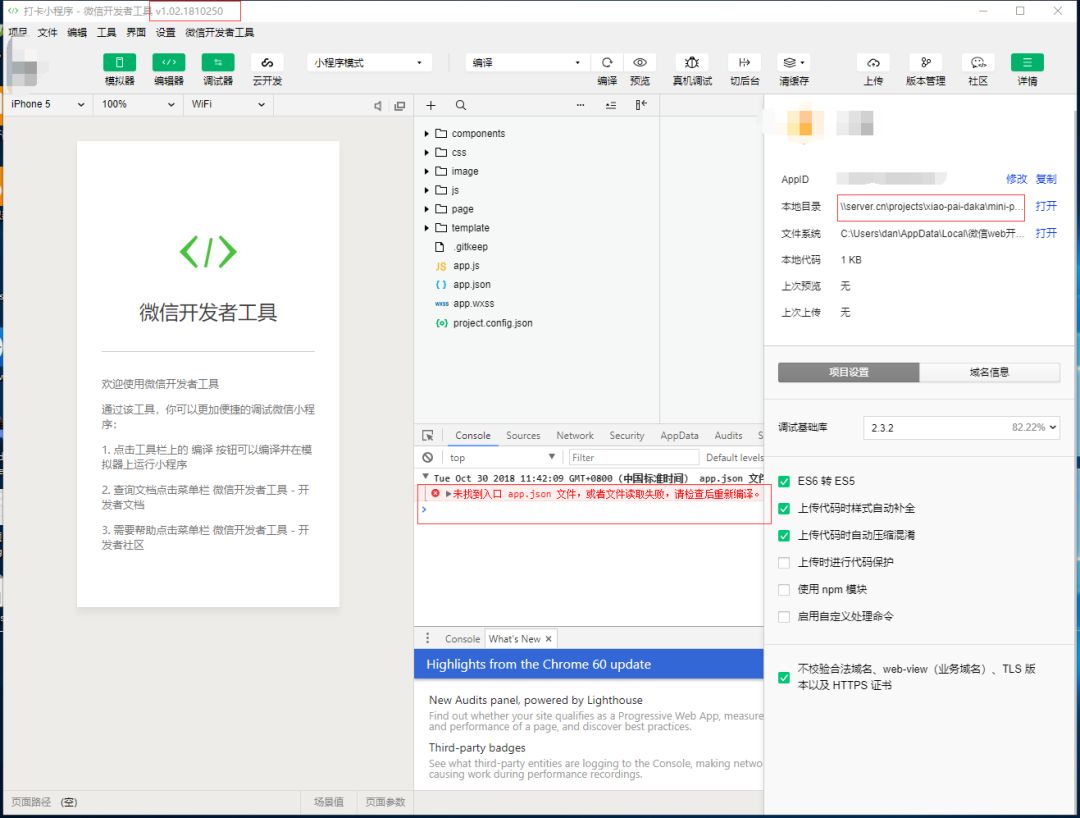 而用现在的最新版本,就提示未找到入口 app.json文件,为什么?越升级越低级的意思么?作为一个用liunx虚拟机下管理git项目在window下开发的我,一直被使用旧版本的