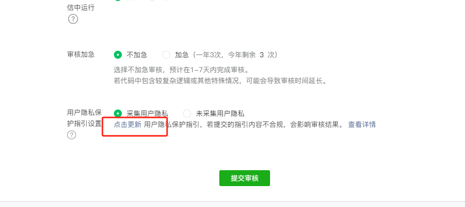 提交版本发布,检查更新隐私协议,如果之前填写的隐私协议没问题,对应的接口勾选了,在提交审核