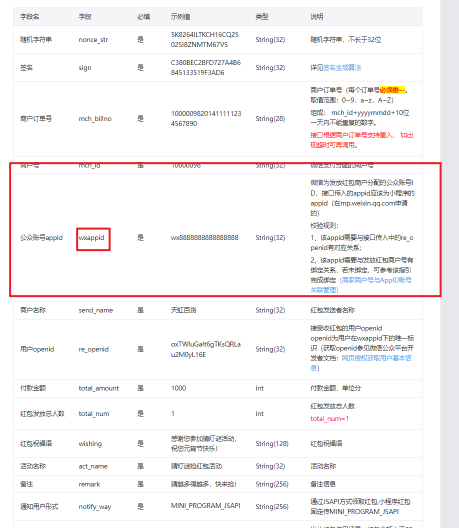 核对了下字段也没超过32个字符,官方接入文档为:https://pay.weixin.qq.com/wiki/doc/api/tools/cash_coupon_xcx.php?chapter=18_2&index=3