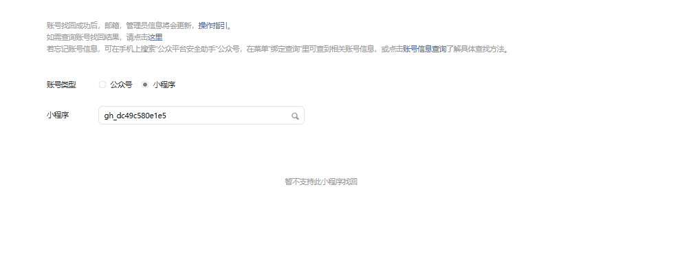 提供的账号信息经核查属于门店/小店小程序,非独立账号,不支持找回。