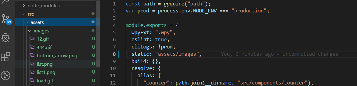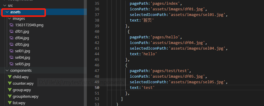 基于wepy2.0开发小程序,tababr的icon不显示,提示文件不存在? 执行编译的weapp 里面没有图片