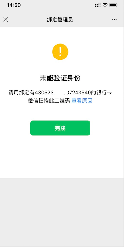 今天小程序更换管理员出问题。微信是已经绑定银行卡的。