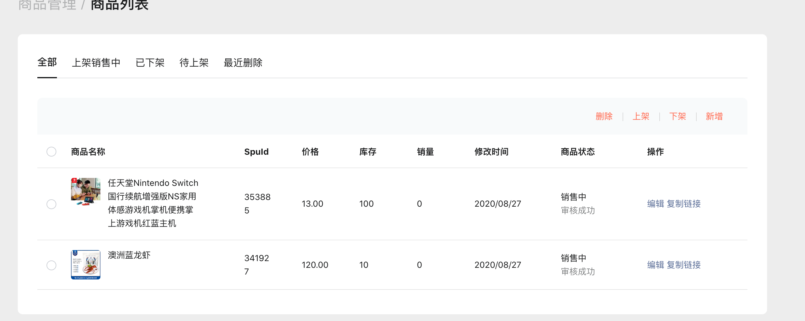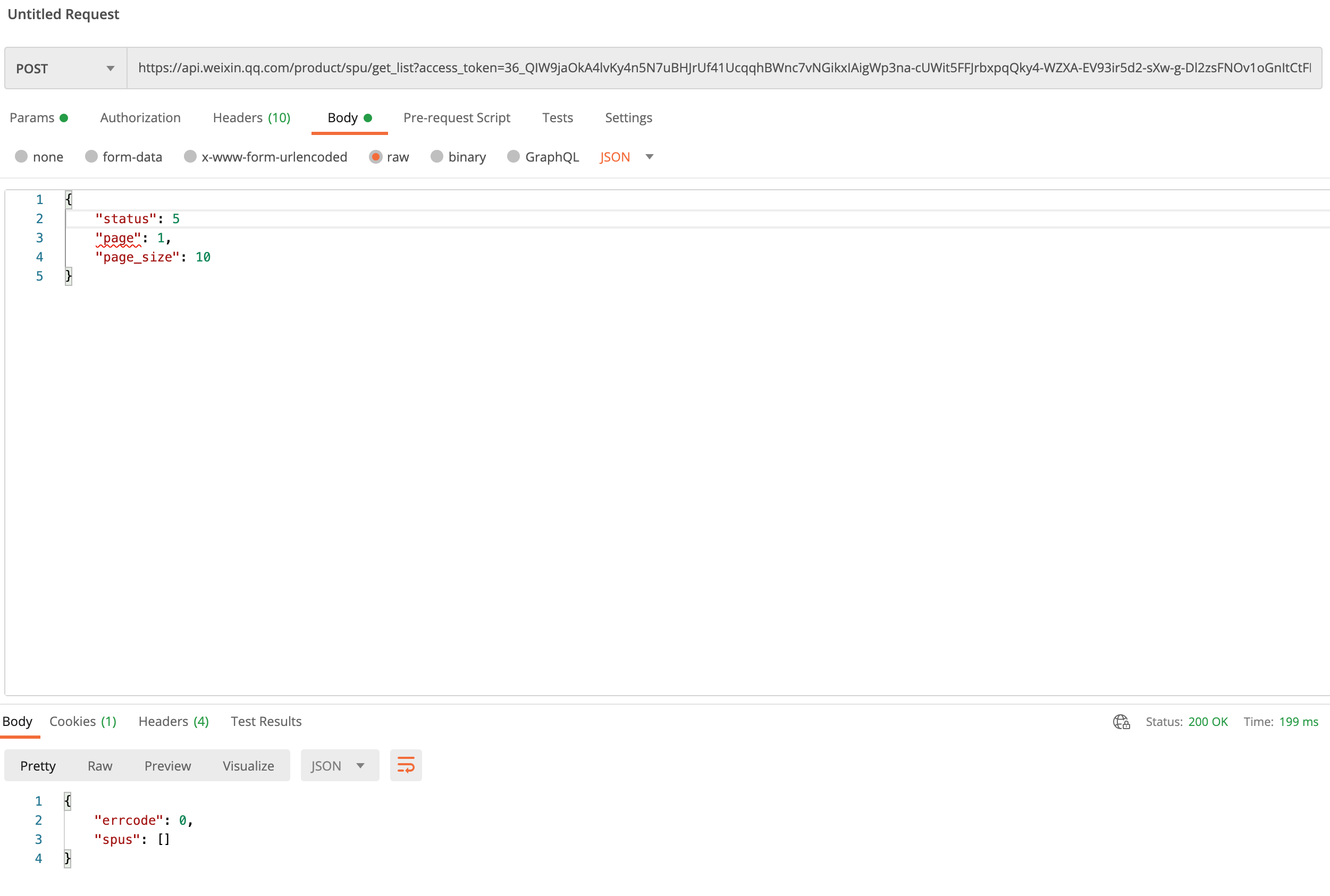 在微信小商店里,通过官方提供的添加商品接口,可以添加成功,在小商店后台可以看到,但是通过官方提供的获取商品列表(status各个参数都已经试过),接口可以请求成功,但是返回没有任何商品。求帮忙解决 appid是wx141f57806a2abe4c