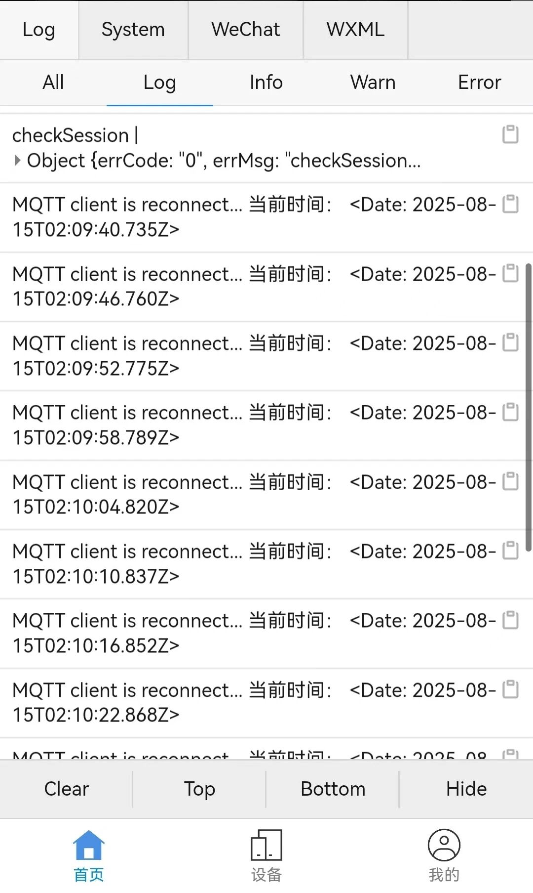 一进入小程序主页 mqtt 就创建了连接,苹果、小米、荣耀手机都没有问题,但鸿蒙系统的 mqtt 一直频繁重连,已经有多个客户反应了。