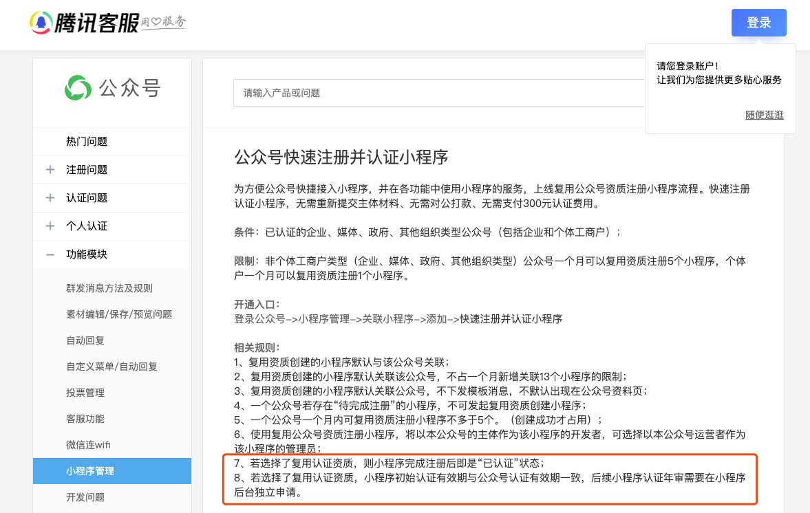 用认证公众号资质免费申请小程序好像可以用了,谁知道具体的信息吗?