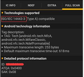 一、这是我用TagInfo读出的门禁卡信息,信息上说明支持ISO 14443-3协议