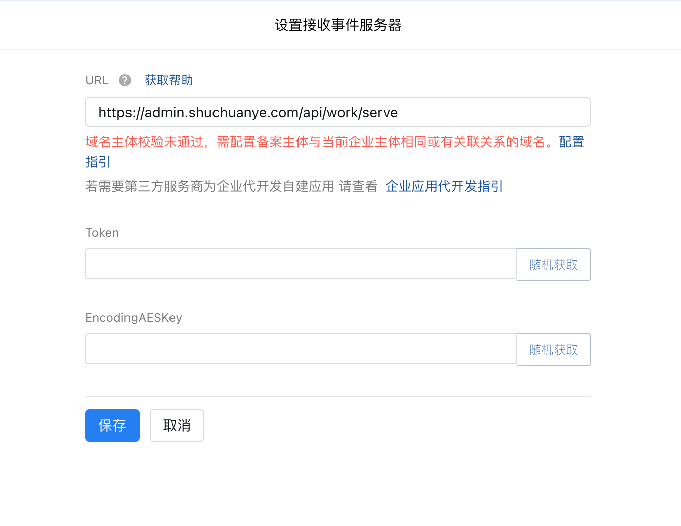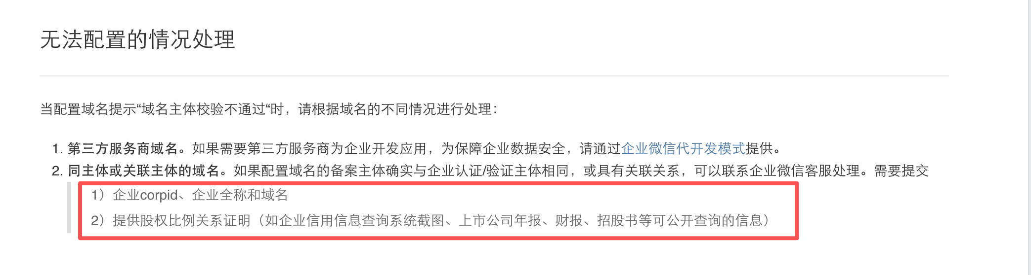 企业微信-通讯录同步-设置接受事件服务器配置url服务域名,企微认证主体与域名主体不一致,校验不通过,如何提交相关资料?