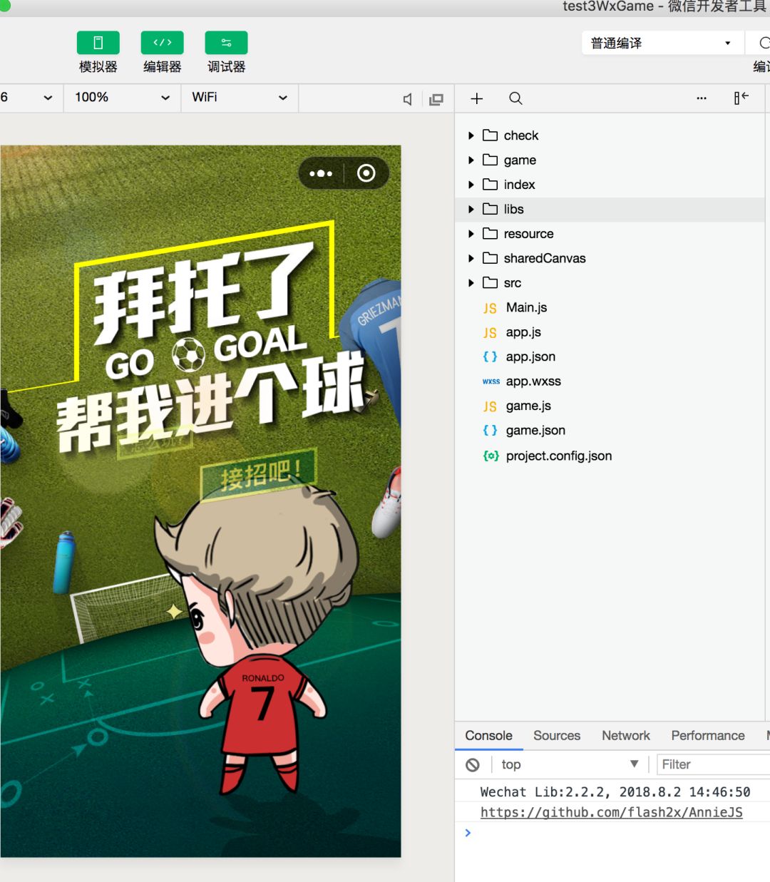上面这个游戏我只用了半天时间就把以前的Flash游戏转换成小游戏了。这里放出源码,大家直接下载后解压用微信开发者工具打开就能预览效果了,见证下这个神奇的开发工具吧。