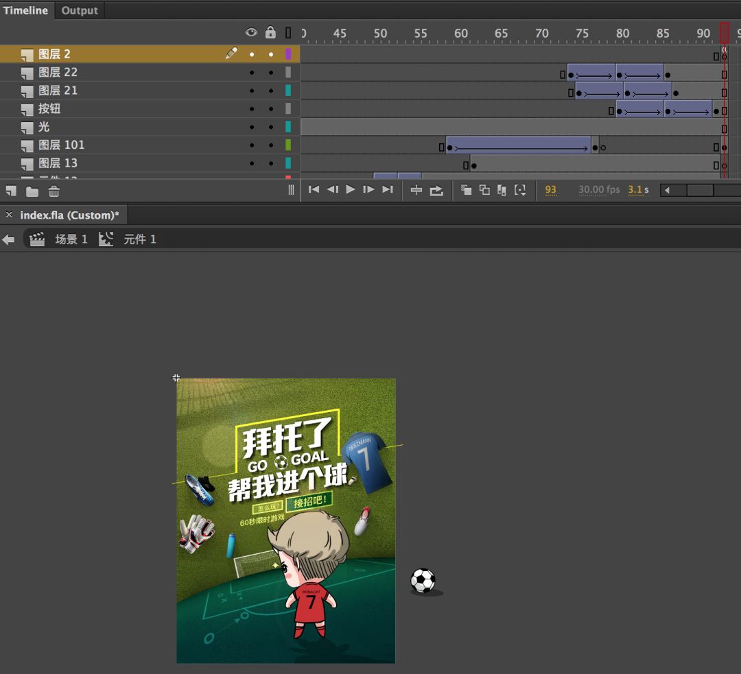 嗯,确实是只花了半天时间,当然Fla源文件之前就有了,动画是之前已经做好的,动画制作的话应该也会花上个2天时间吧。至于那个射门效果,如果你仔细看看Fla文件,你会发现那些个射门角度和效果都是用动画去完成的。代码量其实非常少。