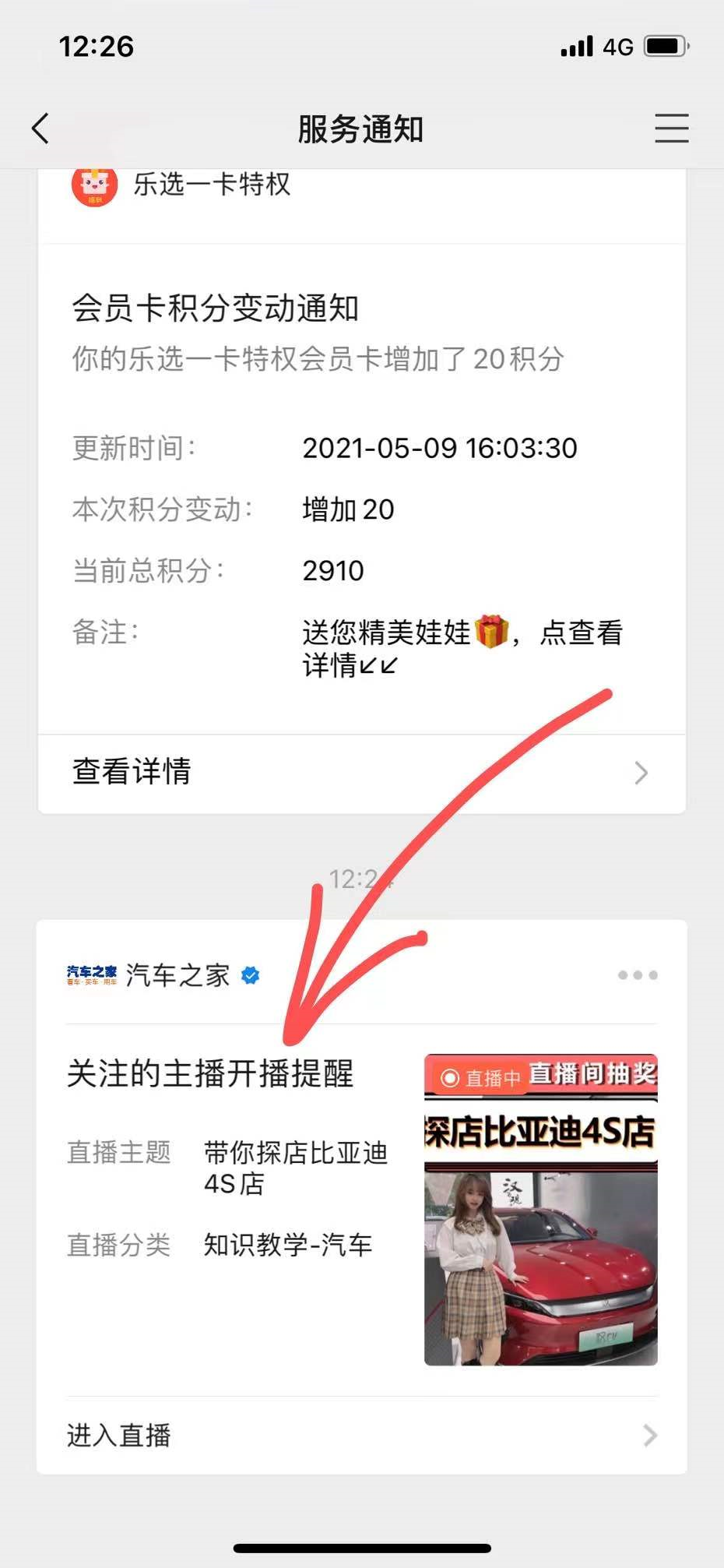 这是消息通知,这个汽车之家是 小程序 / 公众号 还是视频号?