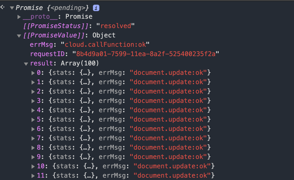 产生原因:由于推送数据采用的是云数据库,云开发最多只能读取100条,所以只能推送100次。