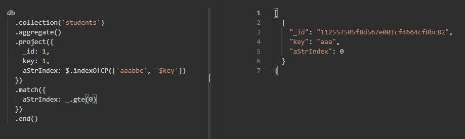 aaabbc 为什么能查到第一条记录?根据什么字段查询?切割字符串?https://developers.weixin.qq.com/miniprogram/dev/wxcloud/reference-sdk-api/database/command/aggregate/AggregateCommand.substr.html