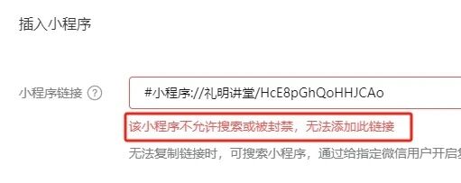 【问题描述】: 该小程序不允许搜索或被封禁,无法添加此链接