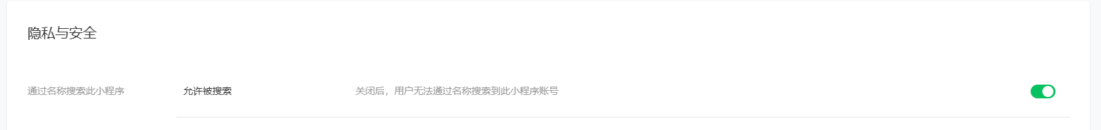 且有第三方api,可以查看该小程序是否允许被搜索的状态:https://developers.weixin.qq.com/doc/oplatform/openApi/OpenApiDoc/miniprogram-management/basic-info-management/getSearchStatus.html