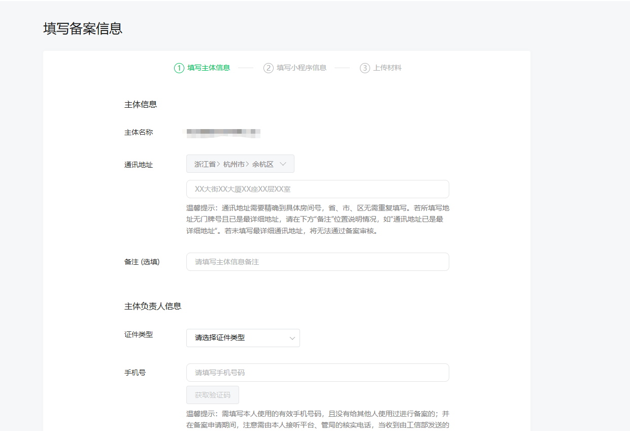 在平台备案系统中,人,手机号,邮箱均一一绑定,同一个人允许为多个小程序备案(同一主体下),可以提交一致的手机号和邮箱,但不能出现不同人共用手机号/邮箱的情况。