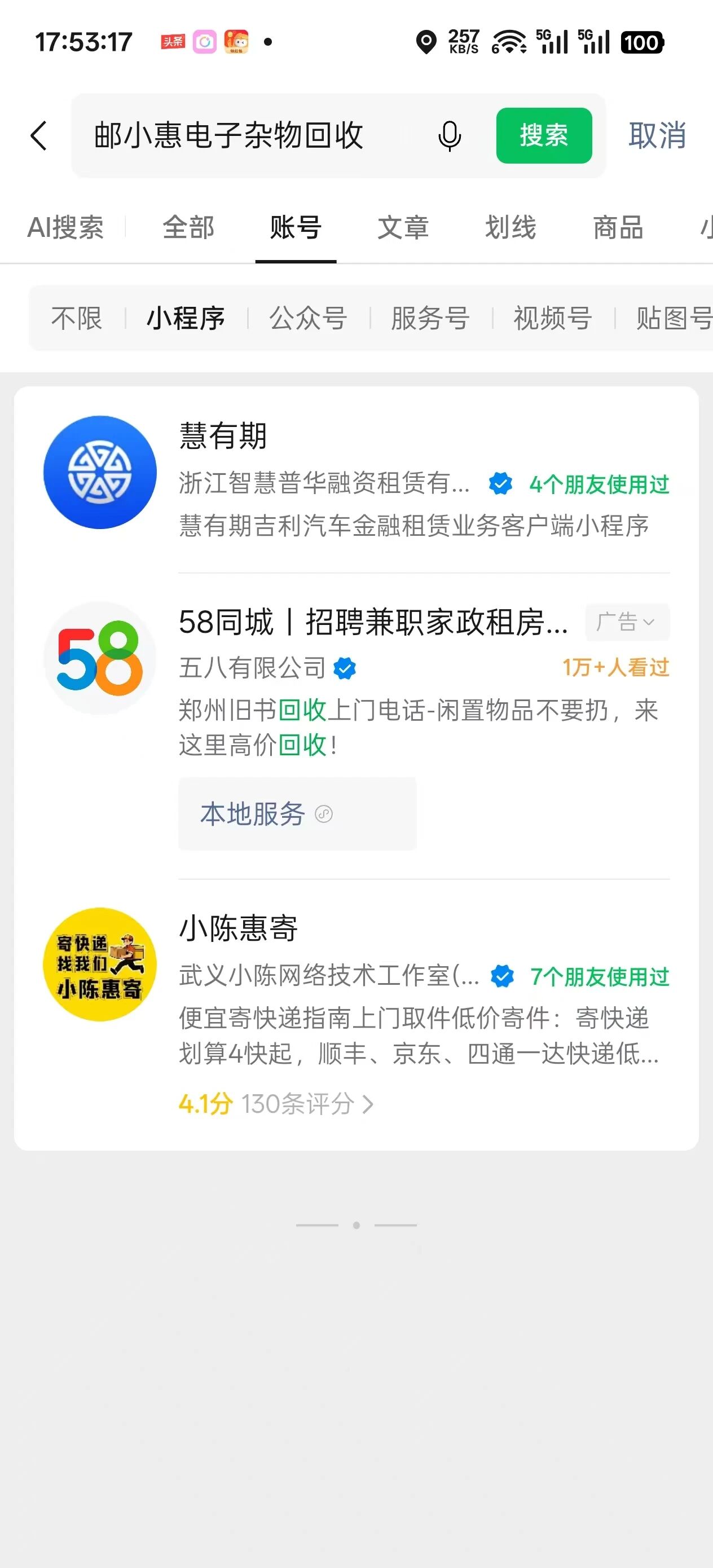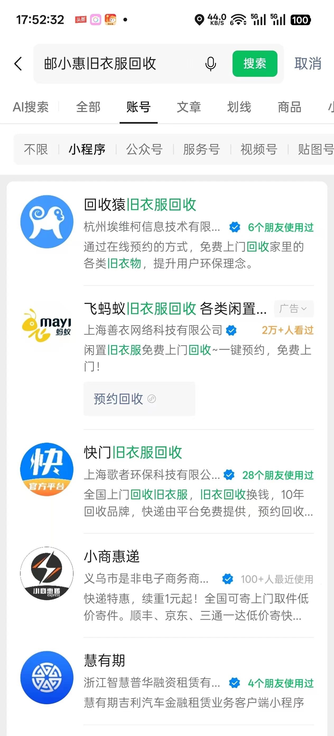 小程序名称:邮小惠旧衣服回收 各类旧物回收