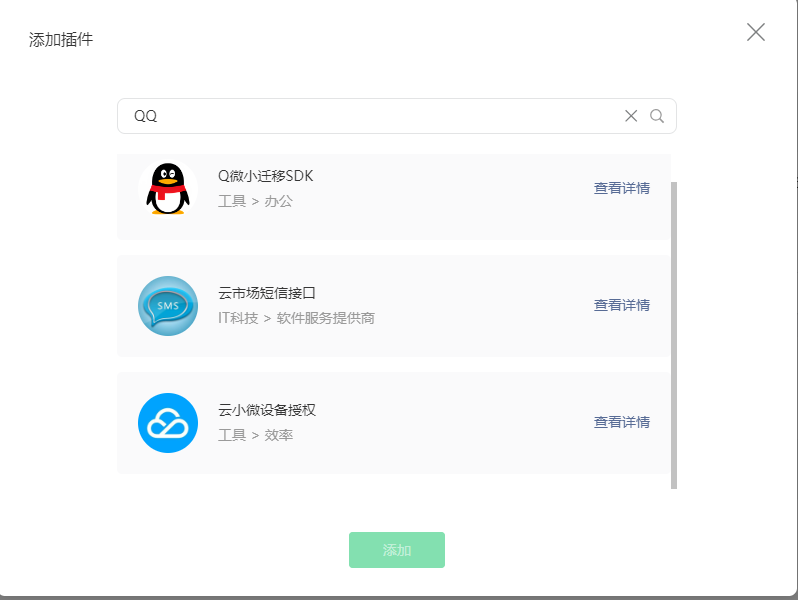 你好,我在微信小程序管理后台的“设置”-“基本设置”中,找到“第三方平台”选项后,在里面没有找到QQ互联相关的插件等,故没有办法添加了QQ互联的相关信息啊