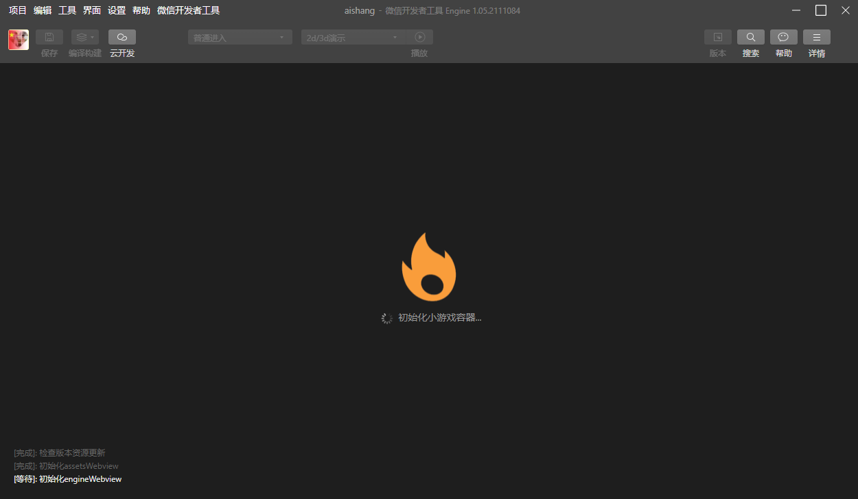 第一次进小游戏开发界面,一直就卡在这个界面,初始化小游戏容器,初始化engineWebview,好几个小时了没有动静,重启电脑,杀进程都没有用