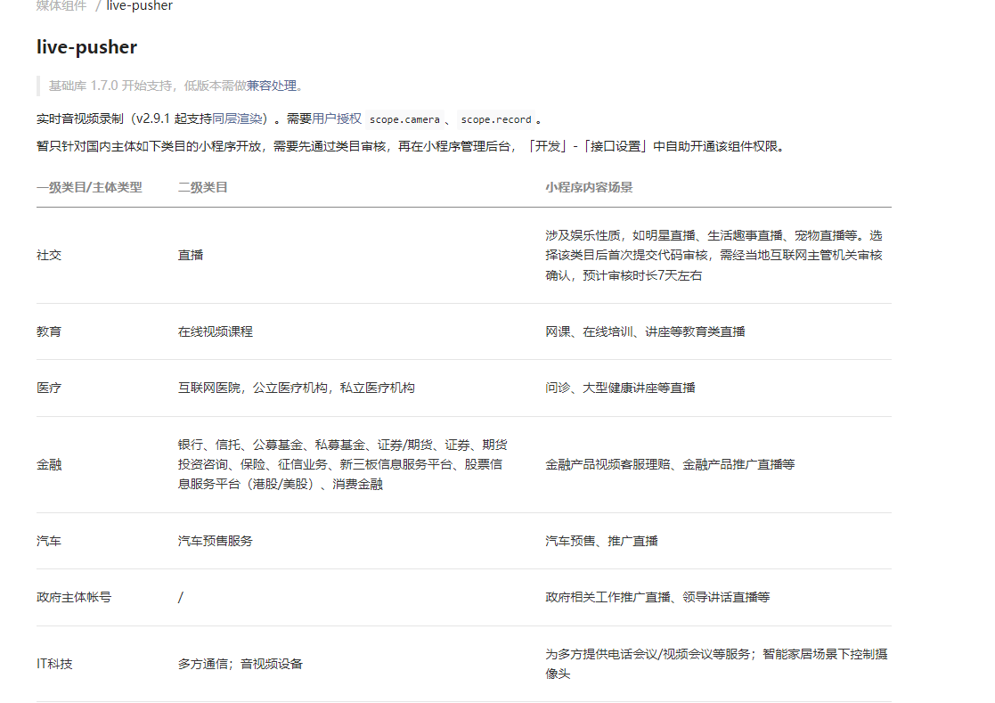 实时播放音视频流和实时录制音视频流这两个接口,开通条件里要求的类目,没有与视频面试相关的,请问要开发视频面试应该用什么类目?如果确实没有符合场景的,请官方尽快开通。