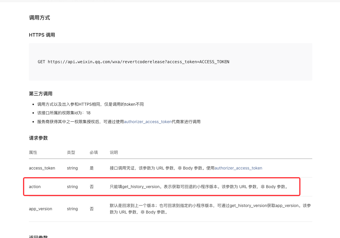 接口传递 access_token 和 app_version 参数,是将小程序回滚到指定版本
