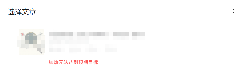 如题,我的公众号是有“付费加热”功能的,之前一篇文章还正常加热,但是这篇文章想要加热的时候就显示“加热无法达到预期目标”,请问是什么原因呀?
