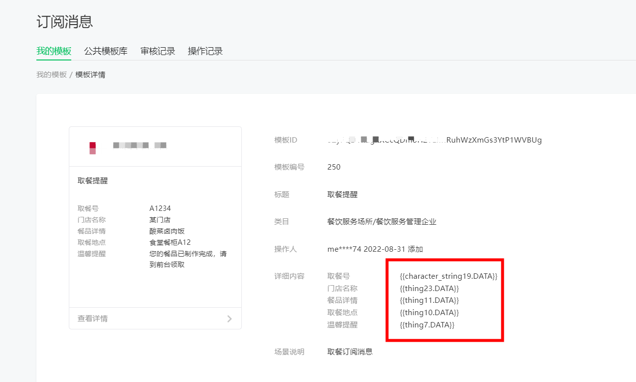 应该是订阅消息模板的字段,这个字段是不固定,自己选的