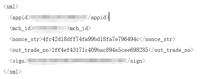 <out_trade_no>1ff4ef43171c409bac894e5cee698285</out_trade_no>