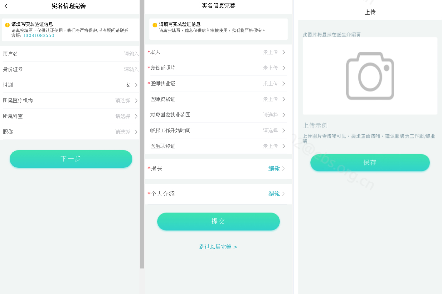 1、场景是医生进行认证提交医生头像照片,及资格证等