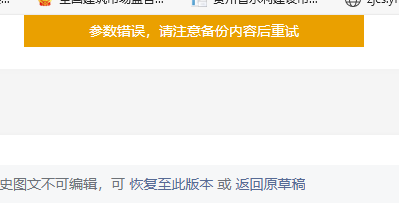 公众号恢复历史版本显示:参数错误请注意备份内容