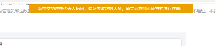 提交的法定代表人信息,验证失败次数太多,请尝试其他验证方式进行注册。