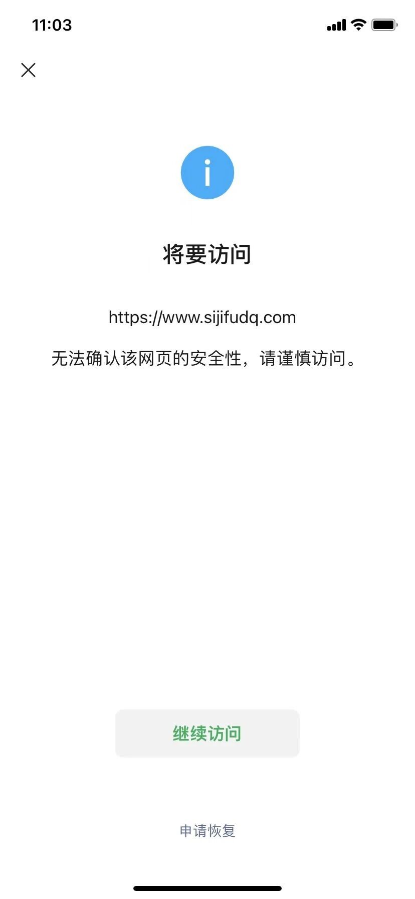 sijifudq.com在微信打开会提示无法确认该网页的安全性请谨慎访问。请问怎么处理?
