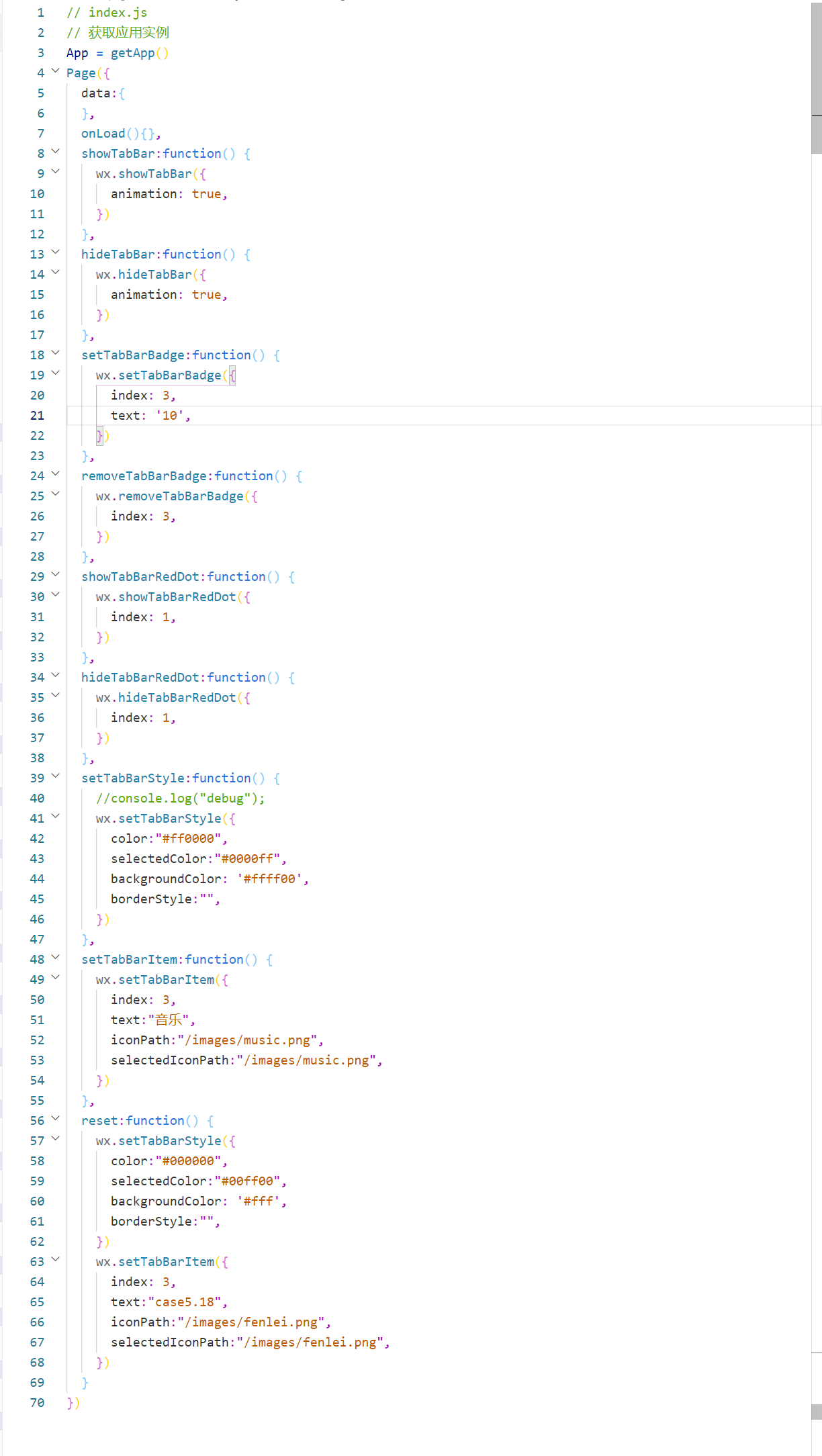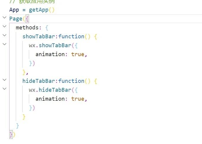 Page({ data: { }, onLoad() {}, showTabBar() { wx.showTabbar({}) } })