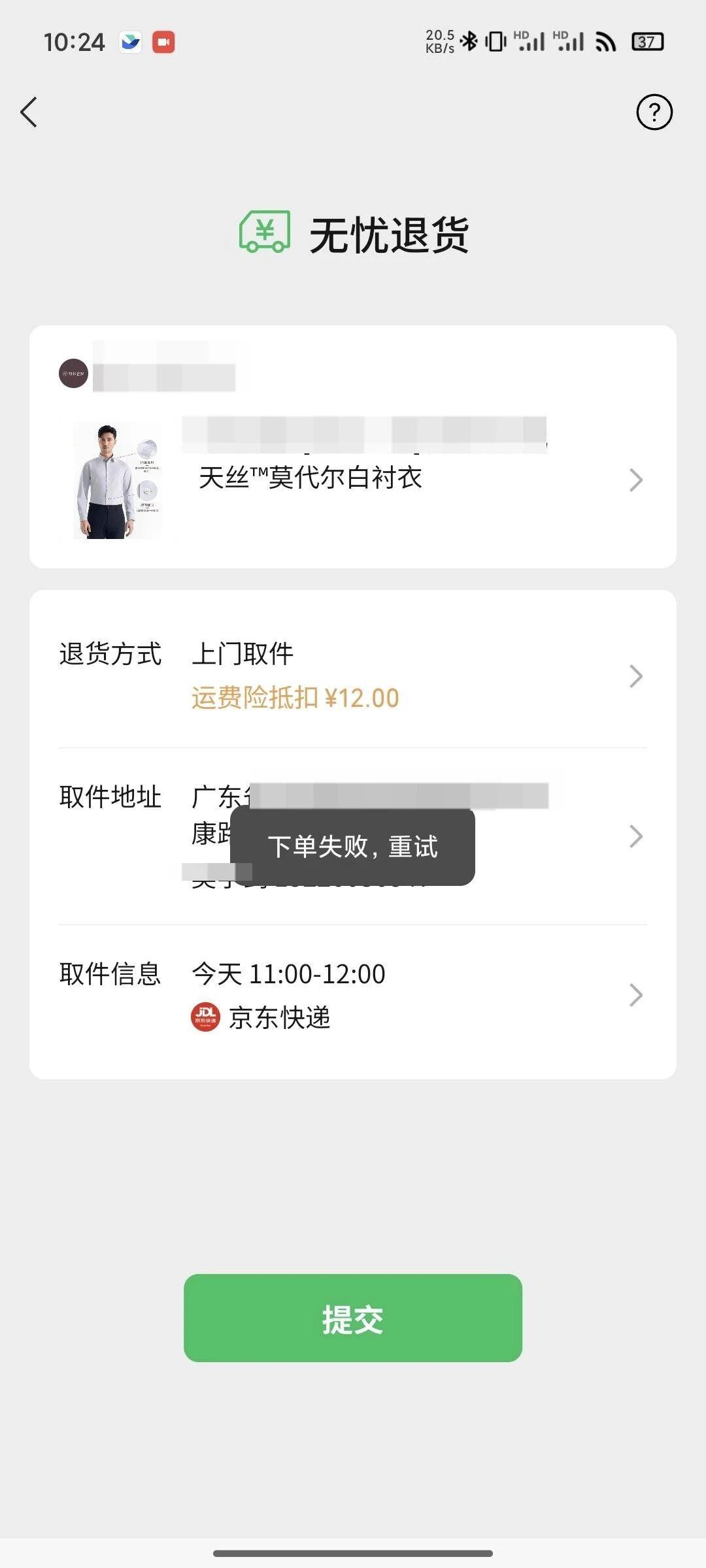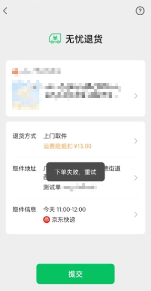 同样遇到这种问题,插件版本是2.3.0,小程序调起插件页面提交会报这个错,点微信推送的消息进去提交也一样报错,从4月25号之后就没成功用过上门取件,麻烦来个官方人员解答一下