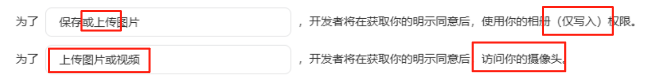 比如【相册(仅写入)权限】的用途是保存图片或保存视频,是没有上传等功能的哦。