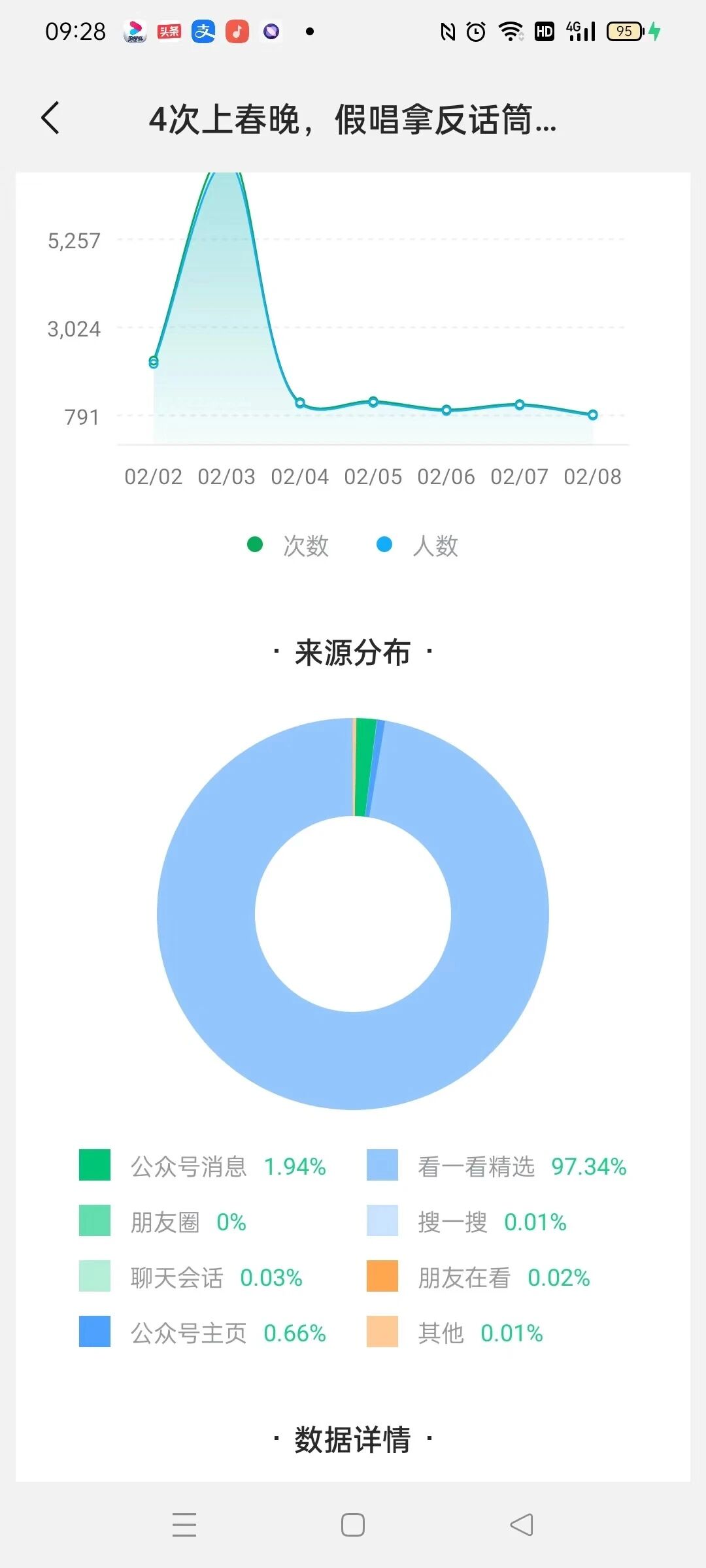 2月15号开始出现异常。15号以后发的每一篇文章,除了有粉丝阅读外,搜一搜、看一看、其他阅读量都是零。并且每一篇都是这样,我觉得非常不正常,但是没收到任何违规的提示,求官方给看看到底问题出哪了?