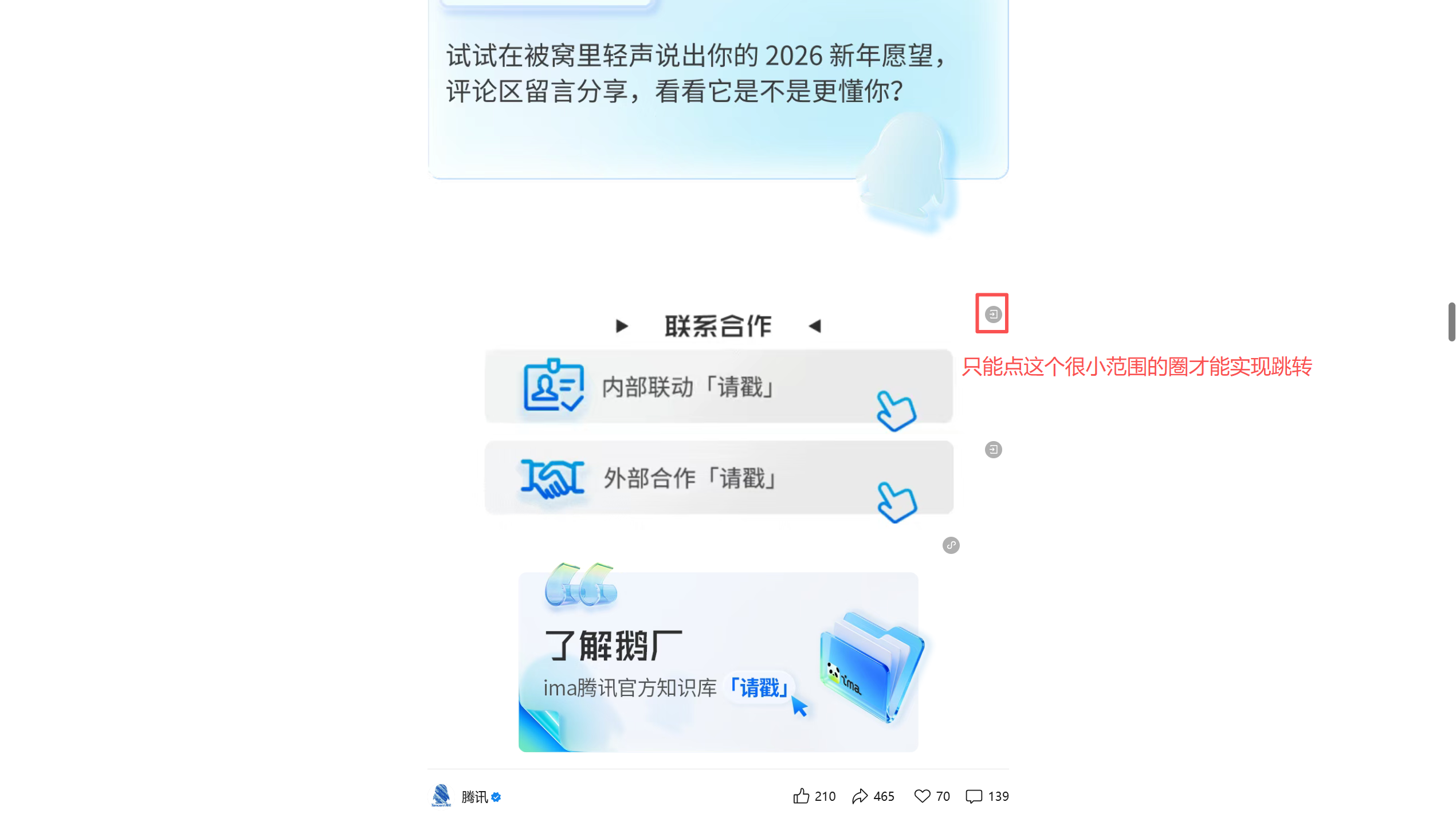 以前是设置了超链接的图片,可以点击图片任意位置跳转到指定链接,现在只能点击右上角标记才能跳转,点图片其他位置都会放大图片,PC端和移动端都会这样。本来以为是自己设置错了,但查看了其他账号也有同样的问题。