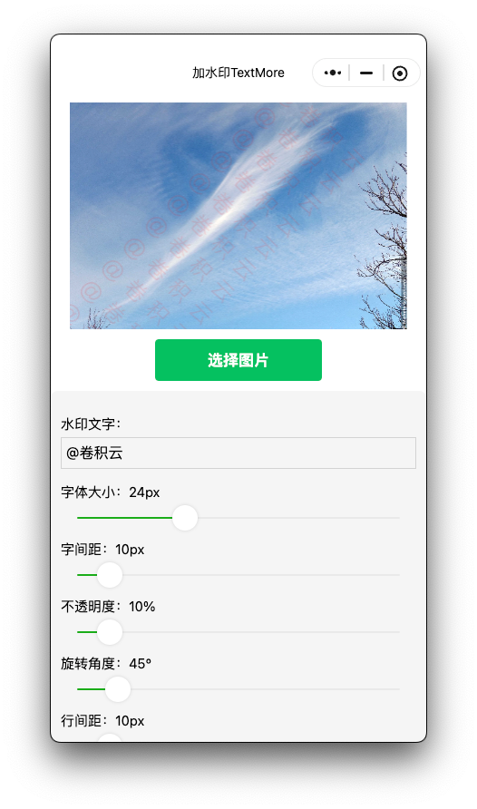 完全由 AI 制作的给图片加水印小程序: