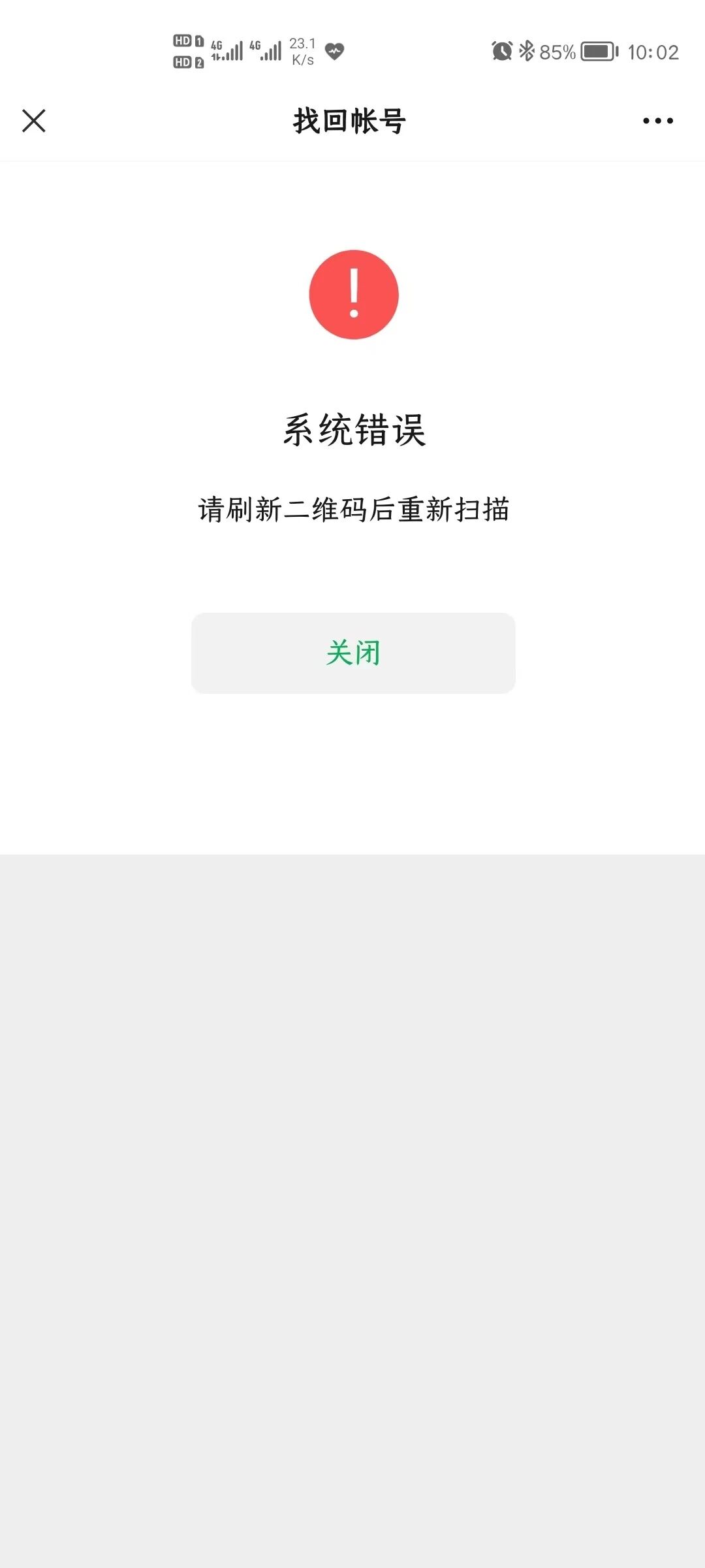 我之前申请的公众号,当时没有填写完认证信息,也没有绑定管理员账号,因为中途有事然后很久没有登录,过了好几个月被冻结了。现在需要什么方法才能解冻或者说找回呢?找回的时候扫描二维码则显示错误,更换了浏览器,换过了网络和终端均不行,请问这个需要怎么处理呢?重新申请的话提示邮箱已经被占用,可以通过账号密码登录到冻结的页面,后续就无法操作了。