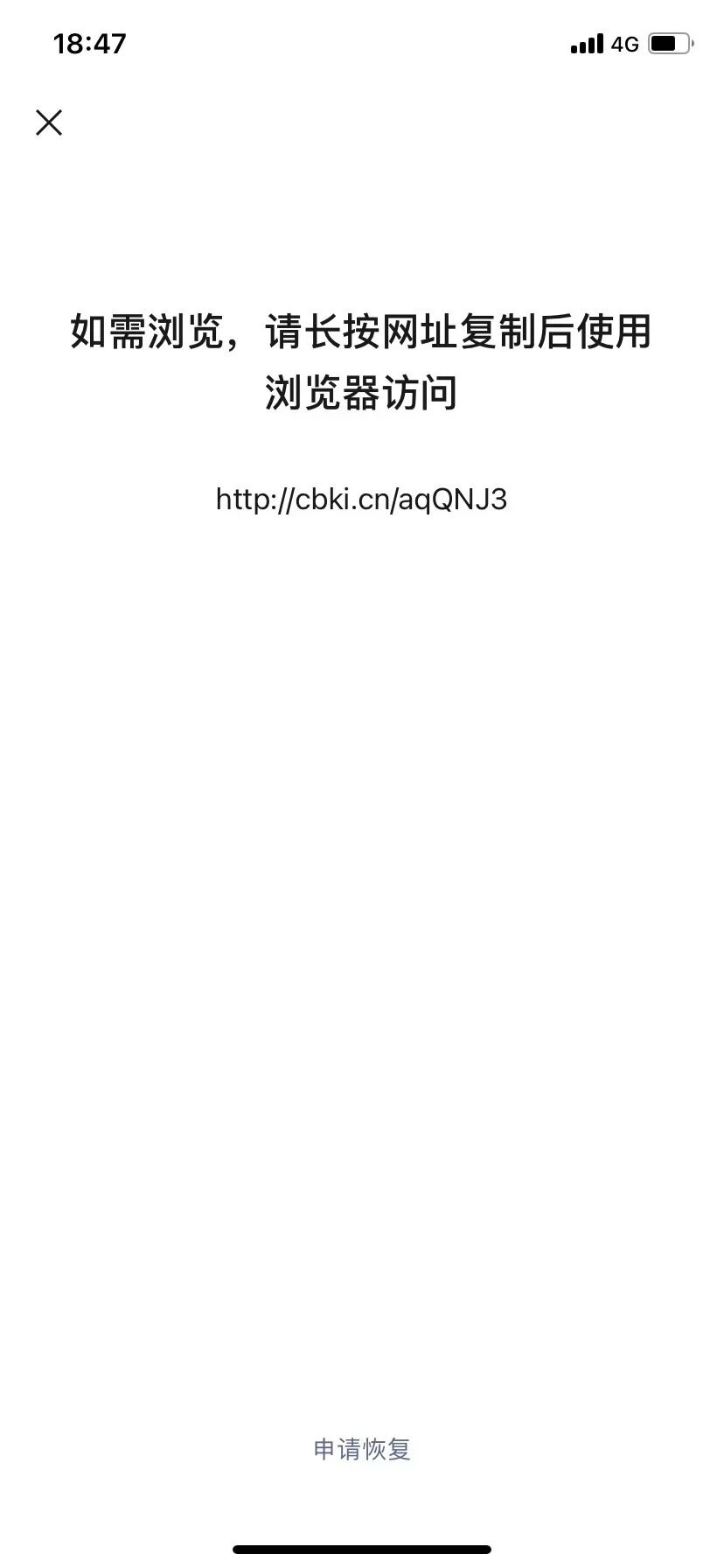公司短链接http://cbki.cn/aqQNJ3 之前好好的,现在在微信群里都无法直接打开,而是提示复制到浏览器访问。