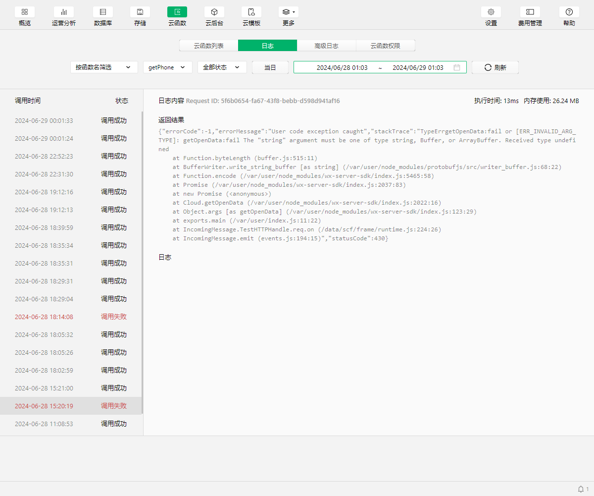 最近几天连续出现云函数报错,求大神解答一下什么原因?