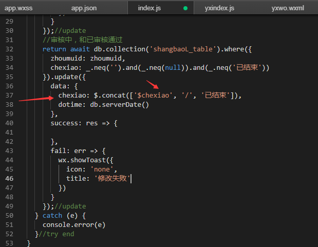 如上图,我想修改 字段 chexiao=chexiao字段值+‘/已结束’