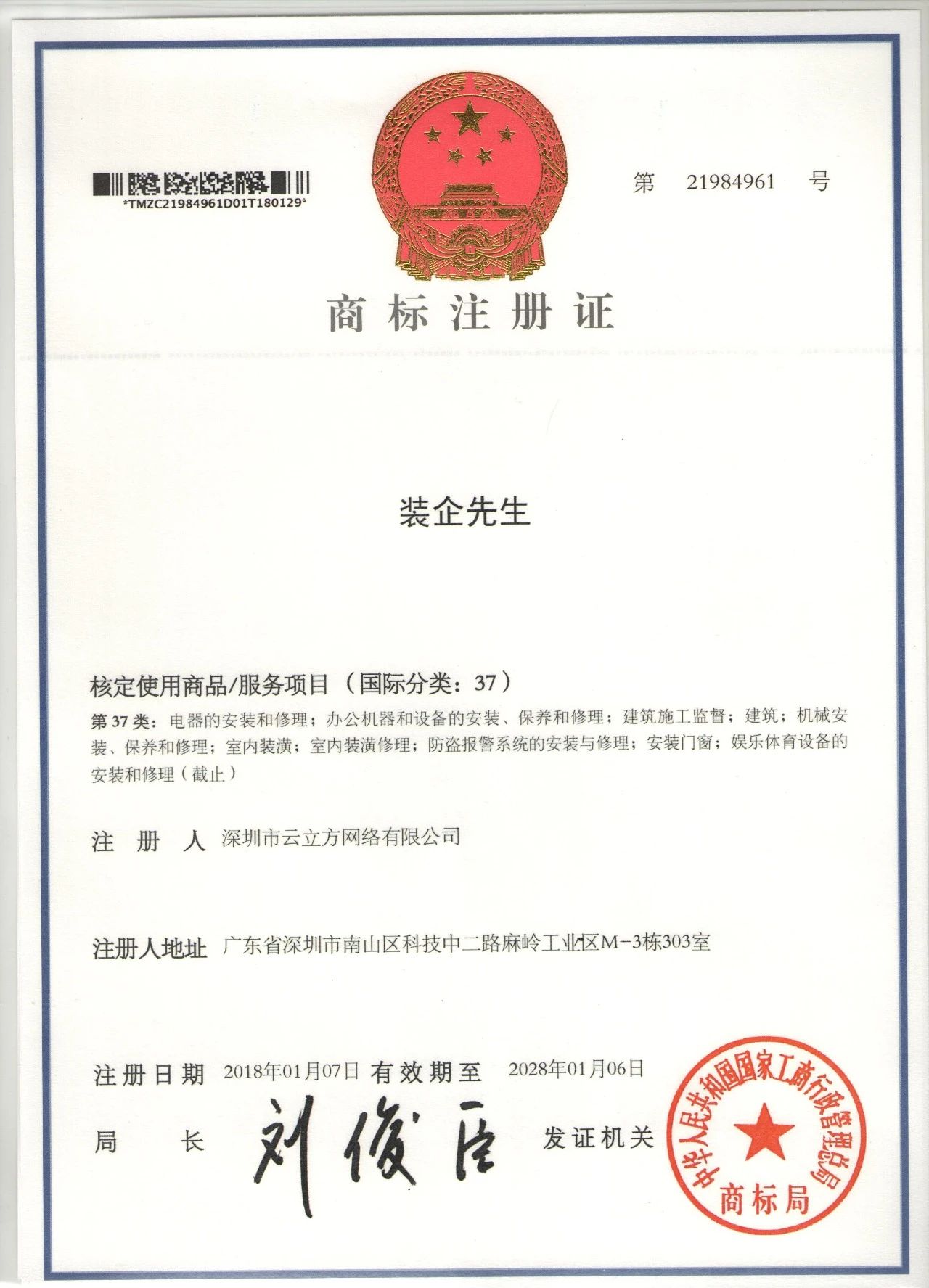 以下是经营软件的营业执照、还有商标包含装修资质,法人也是视频号本人。