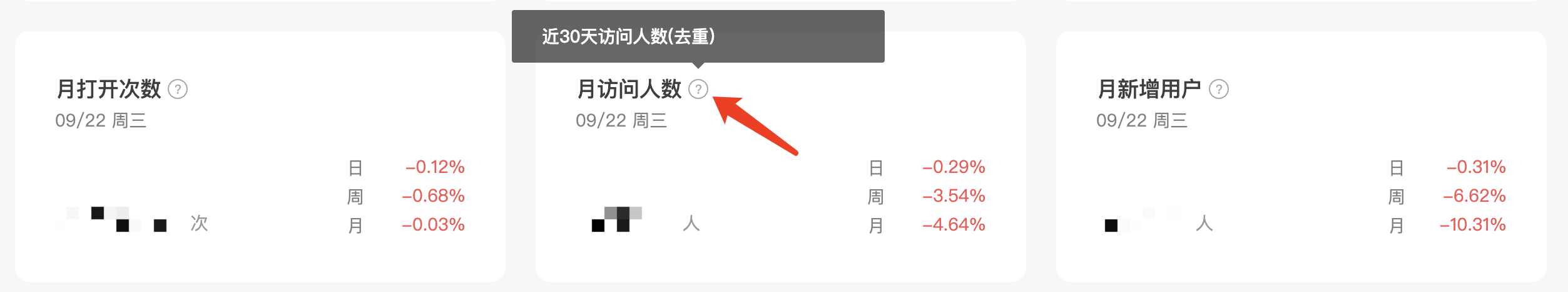 如果想查阅自然月的访问人数,可定位到月底的那一天,进行查看