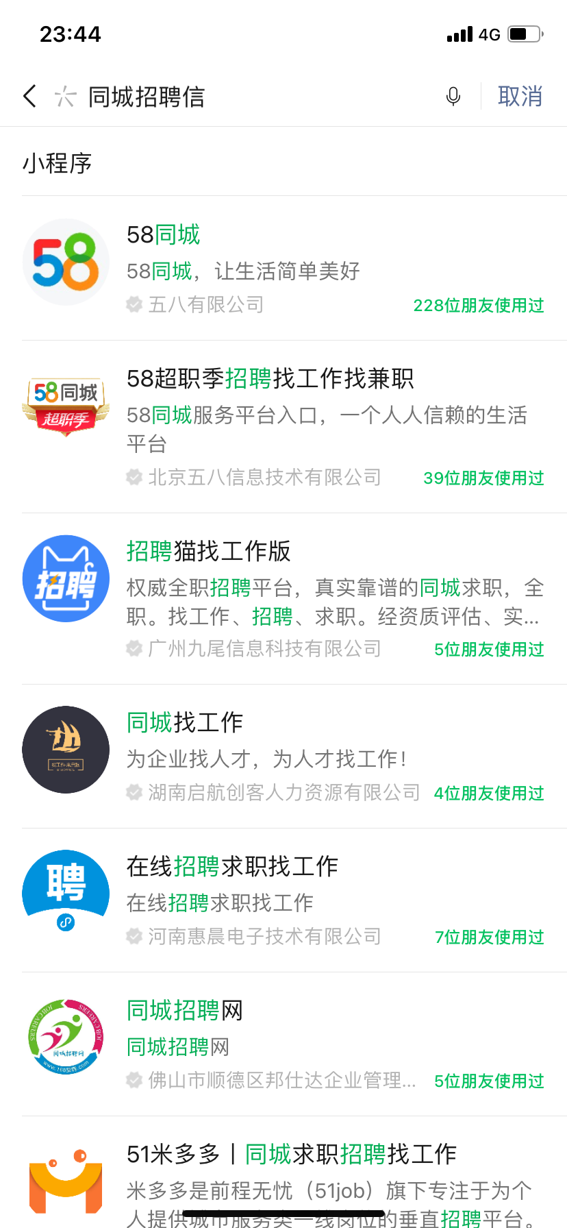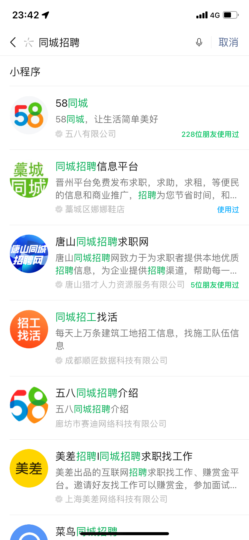 小程序名称同城招聘信息,AppID:wx8a22118c5022e6b0