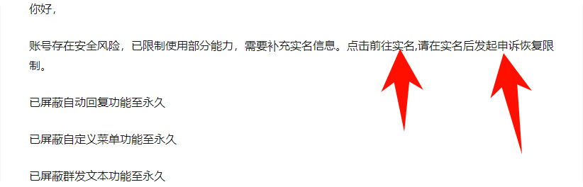 账号存在安全风险,已限制使用部分能力,需要补充实名信息。点击前往实名,请在实名后发起申诉恢复限制。