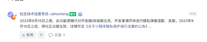 请大家这几天多留意一下官方的通知,也希望官方能在这种关键权限上线测试跟收紧关闭的重要事件上,多通过微信消息、邮件、短信等通知形式来知会一下各位开发者们,我们中的一部分可能没办法天天逛一遍论坛,以防自己错过重要的功能更新。谢谢了!