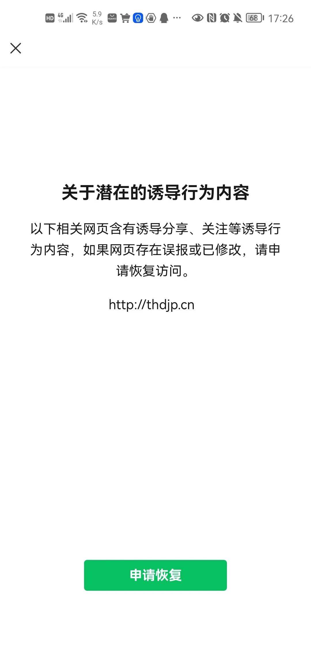 你好,经核实,域名thdjp.cn下违规内容已经修改,现已恢复微信内直接访问的服务,请知悉。