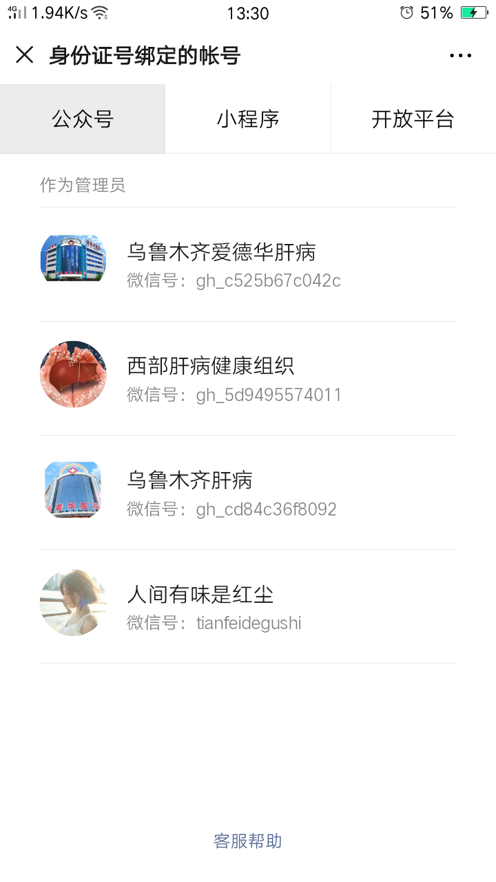 发现自己名下有4个微信公众号,有1个是自己注册的,有3个被别人冒用注册微信公众号了,看上去是医疗机构,怎么申诉解除这些我名下的公众号啊。