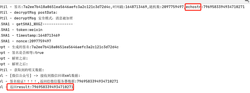 本地使用postman,请求了要设置在微信公众号服务器回调的URL,可以正常返回echostr,点击提交,一直报错token验证失败,请问这个是什么原因呢?